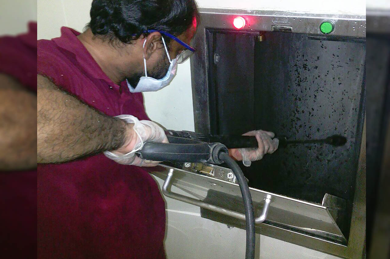 - Chemical wash: All chute doors will be treated with non-hazardous chemicals and thoroughly cleaned both internally and externally on each floor.